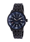 Case Case Measurements: L-44.0 mm W-44.0 mm H - 13.0 mm Case Material: Stainless Steel (Black-IP tone) Crown: Screw down Crystal: Mineral Bezel: Stationary Bezel, All Black-IP tone. Dial: Blue, Metal Dial, Luminous Index Marker Hour indicator , Luminous Hour-Minute Hands Back Case: Stainless Steel, Screw down
