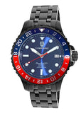 Case Case Measurements: L-43.0 mm W-43.0 mm H - 14.0 mm Case Material: Stainless Steel (Black-IP tone) Crown: Push-Pull Crystal: Mineral Bezel: Rotating Unidirectional, matte polished Bezel,, Black-IP tone Blue/Red. Dial: Blue, Metal Dial, Luminous Index Marker Hour indicator , Luminous Hour-Minute Hands Back Case: Stainless Steel, Screw down