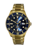 Bezel: Rotating Unidirectional, Ceramic Blue Gold tone trim, Luminous Marker