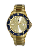 Bezel: Rotating Unidirectional, Aluminum polished Bezel, Blue Gold tone trim, Luminous Marker