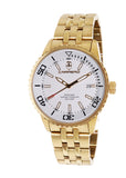 Case Case Measurements: L-44.0 mm W-44.0 mm H - 13.0 mm Case Material: Stainless Steel (Gold tone) Crown: Screw down Crystal: Mineral Bezel: Stationary Bezel, All Gold tone. Dial: White, Metal Dial, Luminous Index Marker Hour indicator , Luminous Hour-Minute Hands Back Case: Stainless Steel, Screw down