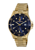 Case Case Measurements: L-44.0 mm W-44.0 mm H - 15.0 mm Case Material: Stainless Steel (Gold tone) Crown: Screw down Crystal: Mineral Bezel: Rotating Unidirectional, Aluminum polished Bezel, Blue color with Gold tone trim Dial: Blue Metal Dial Sun ray , Luminous Index Marker Hour indicator , Luminous Hour-Minute Hands BackCase: Exhibition, Screw down