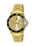 Case Case Measurements: L-44.0 mm W-44.0 mm H - 15.0 mm Case Material: Stainless Steel (Gold tone) Crown: Screw down Crystal: Mineral Bezel: Rotating Unidirectional, Aluminum polished Bezel, Black color with Gold tone trim Dial: Gold tone,Metal Dial Sun ray , Luminous Index Marker Hour indicator , Luminous Hour-Minute Hands Back Case: Exhibition, Screw down