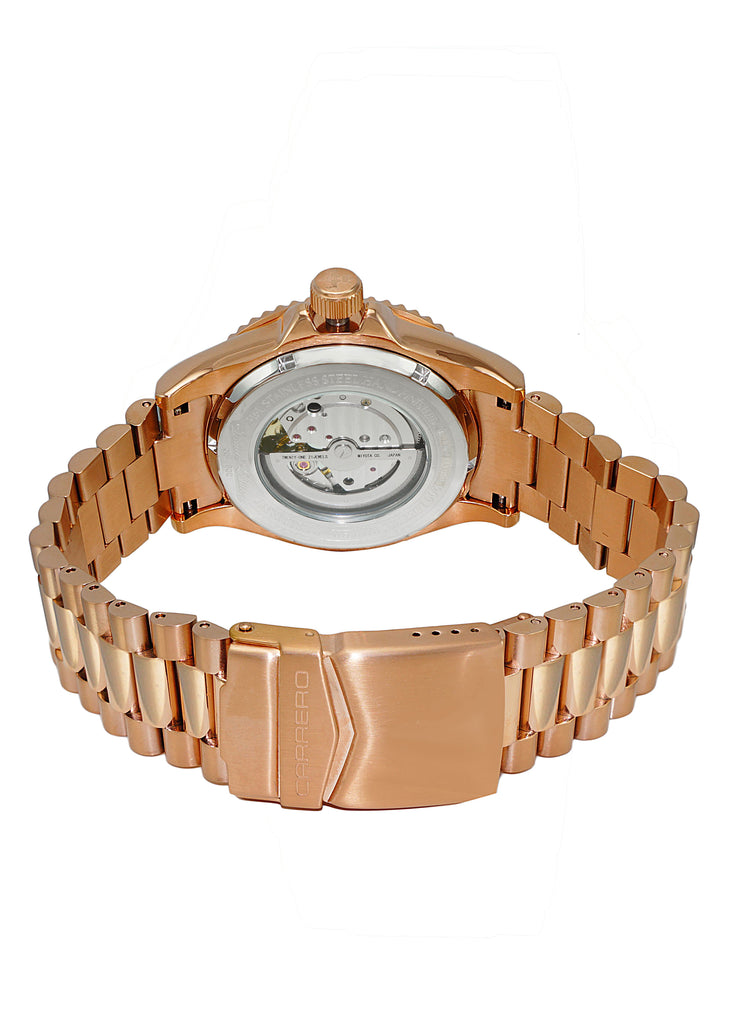 Band Bracelet Measurement: W - 21.50 mm L- 8.50 in Maximum Wrist Size: 10.25 in Bracelet Material: Stainless Steel (Rose tone), partly polished Clasp: Push button fold over dual deployment clasp, with original logo Movement Type: Automatic (Japan Made Caliber: MIYOTA 82S5 - 21 JEWEL Water Resistance: 20 ATM - 200 meters - 660 feet