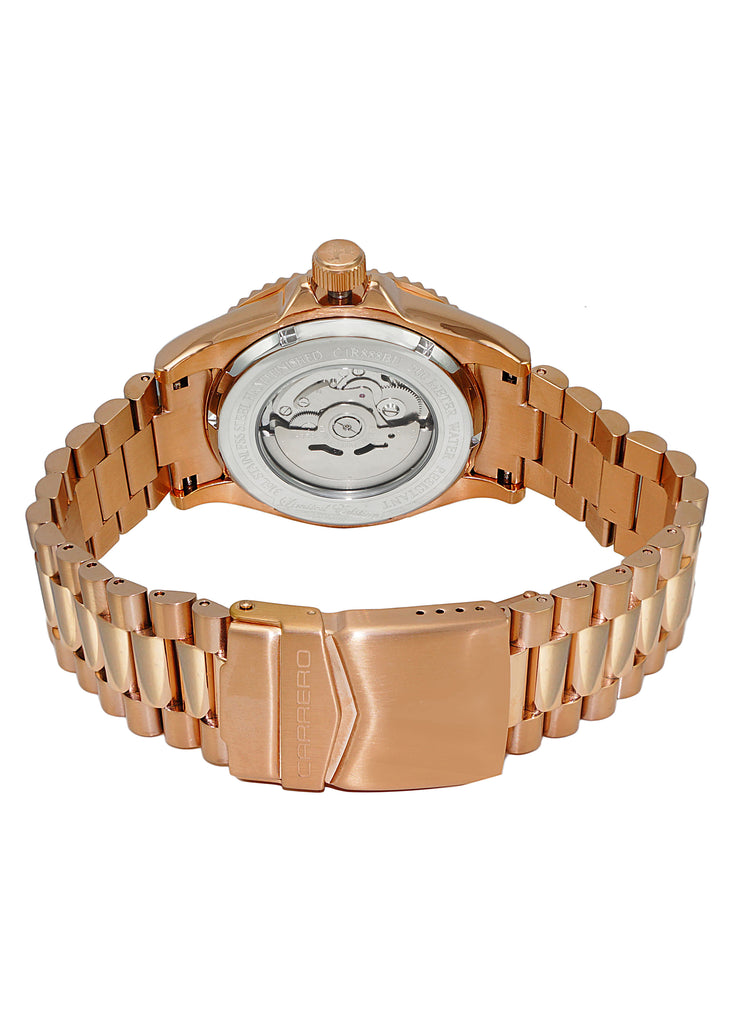 Band Bracelet Measurement: W - 21.50 mm L- 8.50 in Maximum Wrist Size: 10.25 in Bracelet Material: Stainless Steel (Rose tone), partly polished Clasp: Push button fold over dual deployment clasp, with original logo Movement Type: Automatic (Japan Made) Caliber: NH35 - 21 JEWELS Water Resistance: 20 ATM - 200 meters - 660 feet