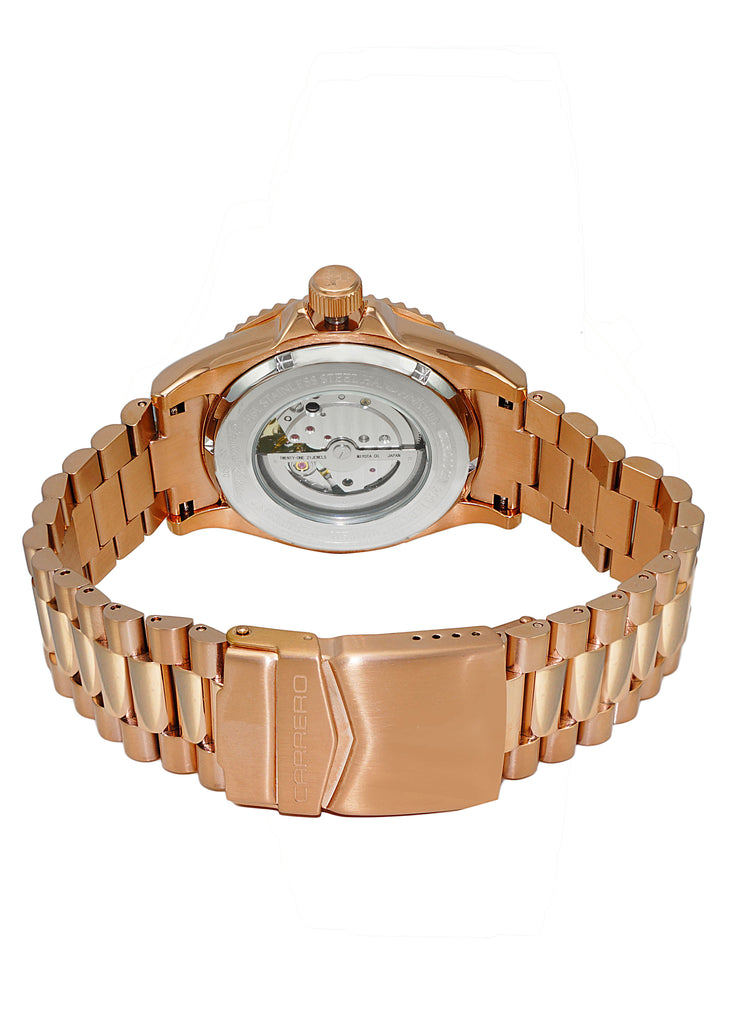 Band Bracelet Measurement: W - 21.50 mm L- 8.50 in Maximum Wrist Size: 10.25 in Bracelet Material: Stainless Steel (Rose tone), partly polished Clasp: Push button fold over dual deployment clasp, with original logo Movement Type: Automatic (Japan Made Caliber: MIYOTA 82S5 - 21 JEWEL Water Resistance: 20 ATM - 200 meters - 660 feet
