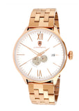 Case Case Measurements: L-50.35 mm W-45.0 mm H - 15.25 mm Case Material: Stainless Steel (Rose tone) Crown: Push/Pull Crystal: Dome Mineral Bezel: Stationary, Polished Bezel, All Rose tone. Dial: Special curve, White Metal Dial, Luminous Hour-Minute Hands, Open heart Back Case: Exhibition, Screw down