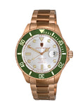 Bezel: Rotating Unidirectional, Ceramic Bezel, Green Rose tone trim, Luminous Marker