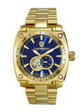 Case Case Measurements: L-47.0 mm W-45.0 mm H - 13.0 mm Case Material: Stainless Steel (Rose tone) Crown: Push / Pull Crystal: Mineral Bezel: Stationary, Rose tone Polished Bezel Dial: Blue Sunray Dial, Luminous Dot Marker, and Rose tone Numeric Hour indicator , Luminous Hour-Minute Hands Back Case: Screw-Down Case back Band Bracelet Measurement: W - 26.50 mm L- 8.50 in Maximum Wrist Size: 10.25 in Bracelet Material: Stainless Steel (Rose tone), partly polished Clasp: Push button fold over dual deployment clasp, with original logo Movement Type: Automatic (Japan Citizen Made) Caliber: Citizen - 21 jewels 82S5 Water Resistance: 10 ATM - 100 meters - 330 feet