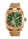 Case Case Measurements: L-47.0 mm W-45.0 mm H - 13.0 mm Case Material: Stainless Steel (Rose tone) Crown: Push / Pull Crystal: Mineral Bezel: Stationary, Rose tone Polished Bezel Dial: Green Sunray Dial, Luminous Dot Marker, and Rose tone Numeric Hour indicator , Luminous Hour-Minute Hands Back Case: Screw-Down Case back Band Bracelet Measurement: W - 26.50 mm L- 8.50 in Maximum Wrist Size: 10.25 in Bracelet Material: Stainless Steel (Rose tone), partly polished Clasp: Push button fold over dual deployment clasp, with original logo Movement Type: Automatic (Japan Citizen Made) Caliber: Citizen - 21 jewels 82S5 Water Resistance: 10 ATM - 100 meters - 330 feet