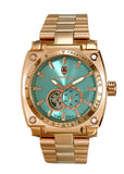 Case Case Measurements: L-47.0 mm W-45.0 mm H - 13.0 mm Case Material: Stainless Steel (Rose tone) Crown: Push / Pull Crystal: Mineral Bezel: Stationary, Rose tone Polished Bezel Dial: Light Green Sunray Dial, Luminous Dot Marker, and Rose tone Numeric Hour indicator , Luminous Hour-Minute Hands Back Case: Screw-Down Case back Band Bracelet Measurement: W - 26.50 mm L- 8.50 in Maximum Wrist Size: 10.25 in Bracelet Material: Stainless Steel (Rose tone), partly polished Clasp: Push button fold over dual deployment clasp, with original logo Movement Type: Automatic (Japan Citizen Made) Caliber: Citizen - 21 jewels 82S5 Water Resistance: 10 ATM - 100 meters - 330 feet