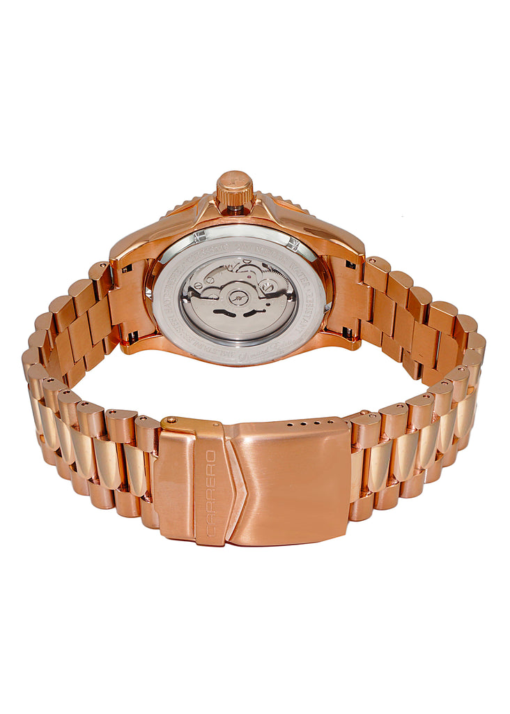 Band Bracelet Measurement: W - 21.50 mm L- 8.50 in Maximum Wrist Size: 10.25 in Bracelet Material: Stainless Steel (Rose tone), partly polished Clasp: Push button fold over dual deployment clasp, with original logo Movement Type: Automatic (Japan Made) Caliber: NH35 - 21 JEWELS Water Resistance: 20 ATM - 200 meters - 660 feet