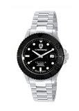 Case Case Measurements: L-44.0 mm W-44.0 mm H - 15.0 mm Case Material: Stainless Steel (Silver tone) Crown: Screw down Crystal: Mineral Bezel: Rotating Unidirectional, Matte polished Bezel, All Black-IP tone color Dial: Black, Metal Dial, Luminous Index Marker Hour indicator , Luminous Hour-Minute Hands Back Case: Exhibition, Screw down