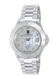 Case Case Measurements: L-44.0 mm W-44.0 mm H - 15.0 mm Case Material: Stainless Steel (Silver tone) Crown: Screw down Crystal: Mineral Bezel: Rotating Unidirectional, Matte polished Bezel, All Stainless Steel - Silver tone. Dial: White MOP (Mother of Pearl), l, Luminous Index Marker Hour indicator , Luminous Hour-Minute Hands Back Case: Exhibition, Screw down