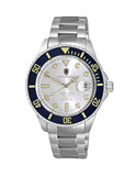 Bezel: Rotating Unidirectional, Aluminum polished Bezel, Blue Silver tone trim, Luminous Marker