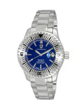 Case Case Measurements: L-45.50 mm W-45.50 mm H - 16.0 mm Case Material: Stainless Steel (Silver tone) Crown: Silver tone, Long Post, Water proof, Screw/down. Crystal: Sapphire, with Magnifying Date. Bezel: Rotating Uni-Directional, Stainless Steel Gear Design Polished in Silver tone. Dial: Blue Enamel Date Window Dial, Luminous Index hour indicator , and Hour-Minute Hand in Sliver tone. Back Case: Exhibition Screw-Down Case back Band Bracelet Measurement: W - 22.0 mm L- 8 in Maximum Wrist Size: 9.50 in Bracelet Material: Stainless Steel (Silver tone), Middle links polished. Clasp: Push button fold over dual deployment clasp, with original logo Movement Type: Automatic (Swiss Made) Caliber: SELLITA SW-200 - 26 JEWELS Water Resistance: 20 ATM - 200 meters - 660 feet