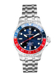 Case Case Measurements: L-44.50 mm W-44.50 mm H - 14.0 mm Case Material: Stainless Steel (Silver tone) Crown: Push-Pull Crystal: Mineral Bezel: Rotating Unidirectional, matte polished Bezel, Silver tone Red/Blue Dial: Blue, Metal Dial, Luminous Index Marker Hour indicator, Luminous Hour-Minute Hands Back Case: Stainless Steel, Screw down