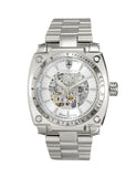 Case Case Measurements: L-47.0 mm W-45.0 mm H - 13.0 mm Case Material: Stainless Steel (Silver tone) Crown: Push / Pull Crystal: Mineral Bezel: Stationary, Silver tone Polished Bezel Dial: Silver tone, Silver Sun-ray Dial, Luminous Dot Marker, and Gold tone Numeric Hour indicator , Luminous Hour-Minute Hands Back Case: Exhibition Screw-Down Case back Band Bracelet Measurement: W - 26.50 mm L- 8.50 in Maximum Wrist Size: 10.25 in Bracelet Material: Stainless Steel (Silver tone), partly polished Clasp: Push button fold over dual deployment clasp, with original logo Movement Type: Automatic (Japanese Made) Caliber: Japan - 8N24 Water Resistance: 10 ATM - 100 meters - 330 feet