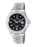 Case Case Measurements: L-44.0 mm W-44.0 mm H - 15.0 mm Lug-Lug - 53.50mm Case Material: Stainless Steel (Silver tone) Crown: Screw down Crystal: Mineral, with magnifying glass Bezel: Rotating Unidirectional, Guniune Sapphire Gem Stone (61 pcs Setiing Stone). Dial: Black, (MOP) Mother of Pearl, Luminous Index Marker Hour indicator and (8 pcs Setting Stone) Genuine Sapphire Stone, Luminous Hour-Minute Hands,. Back Case: Exhibition, Screw down