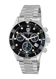 Case Case Measurements: L-44.0 mm W-44.0 mm H - 15.0 mm Case Material: Stainless Steel (Silver tone) Crown: Screw down, with function pusher Crystal: Mineral Bezel: Rotating Unidirectional, Aluminum polished Bezel, Black color with Silver tone trim Dial: Black Sun-ray Metal Dial, Luminous Index Dot Marker and Hour indicator , Luminous Hour-Minute Hands BackCase: Exhibition, Screw down