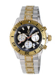 Case Case Measurements: L-43.0 mm W-43.0 mm H - 14.0 mm Case Material: Stainless Steel 2-tone (Gold-SIlver tone). 32 pcs Setting Genuine Sapphire Stone Crown: Screw down Crystal: Mineral , Magnifying glass Bezel: Rotating Unidirectional, Shiny polished Bezel, All Gold tone. Dial: Black Sun-say Metal Dial, Luminous Index Marker Hour indicator , Luminous Hour-Minute Hands, MOP (Mother Of Pearl) Sub-Dials. Back Case: Embossed Screw down