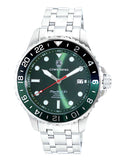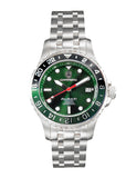 Case Case Measurements: L-44.50 mm W-44.50 mm H - 14.0 mm Case Material: Stainless Steel (Siver tone) Crown: Push-Pull Crystal: Mineral Bezel: Rotating Unidirectional, matte polished Bezel,, Silvertone Green/Black Dial: Green, Metal Dial, Luminous Index Marker Hour indicator, Luminous Hour-Minute Hands Back Case: Stainless Steel, Screw down