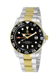 Case Case Measurements: L-42.0 mm W-42.0 mm H - 12.0 mm Case Material: Stainless Steel (2-Tone-Gold tone) Crown: Gold tone, Medium Post, Water proof, Screw-down. Crystal: Mineral, with Magnifying Date. Bezel: Rotating Uni-Directional, Black Ceramic in Gold tone trim. Dial: Black Enamel Date Window Dial, Luminous Index hour indicator , and Hour-Minute Hand in Gold tone. Back Case: Screw-Down Case back Band Bracelet Measurement: W - 22.0 mm L- 8 in Maximum Wrist Size: 9.50 in Bracelet Material: Stainless Steel , 2-Tone Gold tone Middle links polished. Clasp: Push button fold over dual deployment clasp, with original logo Movement Type: Quartz (Swiss Made) Caliber: Ronda - 515.24D Water Resistance: 10 ATM - 100 meters - 330 feet