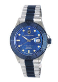 Band Bracelet Measurement: W - 21.50 mm L- 8.50 in Maximum Wrist Size: 10.25 in Bracelet Material: Stainless Steel (2-tone, Blue-IP), partly polished Clasp: Fold over dual deployment, with safety clasp, with original logo. Movement Type: Automatic (Japan Made) Caliber: NH35 - 21 JEWELS Water Resistance: 20 ATM - 200 meters - 660 feet