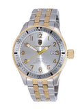 Case Case Measurements: L-44.50 mm W-44.50 mm H - 14.0 mm Case Material: 316L Stainless Steel (2-Tone Gold) Crown: Screw down Crystal: Mineral Bezel: Rotating Unidirectional, Aluminum polished Bezel, All Silver with Gold tone trim. Dial: Silver Metal Dial, Numeric Hour Indicator, Luminous Hour-Minute-Second Hands Back Case: Screw down, Mineral Crsytal