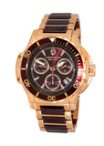 Case Case Measurements: L-45.0 mm W-50.0 mm H - 13.50 mm Case Material: Rose tone, Stainless Steel and Brown High-tech ceramic Crown: Rose tone, Screw/down, with active pushers 2:00 - Push button (Start /Stop), 4:00 -Push button (Split Reset). Crystal: Mineral Bezel: Rotating Directional, Aluminum Black polished in Gold tone trim Dial: Green Sun-ray Dial, Luminous Index hour indicator , and Hour-Minute Hands, Gold tone Sun-ray Sub dials Back Case: Screw-Down Case back Band Bracelet Measurement: W - 24.0 mm L- 8 in Maximum Wrist Size: 9.75 in Bracelet Material: Stainless Steel (Polished Rose tone), Brown high-tech ceramic middle links Clasp: Push button fold over dual deployment with safety clasp,in original logo Movement Type: Chronograph (Ronda Swiss Made) Caliber: Ronda - R9 Z60 Water Resistance: 10 ATM - 200 meters - 660 feet