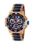 Case Case Measurements: L-45.0 mm W-50.0 mm H - 13.50 mm Case Material: Rose tone, Stainless Steel and Blue High-tech ceramic Crown: Rose tone, Screw/down, with active pushers 2:00 - Push button (Start /Stop), 4:00 -Push button (Split Reset). Crystal: Mineral Bezel: Rotating Directional, Aluminum Blue polished in Rose tone trim Dial: Blue Sun-ray Dial, Luminous Index hour indicator , and Hour-Minute Hands, Rose tone trim Sun-ray Sub dials Back Case: Screw-Down Case back Band Bracelet Measurement: W - 24.0 mm L- 8 in Maximum Wrist Size: 9.75 in Bracelet Material: Stainless Steel (Polished Rose tone), Blue high-tech ceramic middle links Clasp: Push button fold over dual deployment with safety clasp,in original logo Movement Type: Chronograph (Ronda Swiss Made) Caliber: Ronda - R9 Z60 Water Resistance: 10 ATM - 200 meters - 660 feet