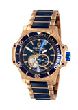 Case Case Measurements: L-45.0 mm W-50.0 mm H - 13.50 mm Case Material: Stainless Steel (Rose tone) and Blue High-tech ceramic Crown: Blue-IP tone, Screw/down. Crystal: Mineral Bezel: Rotating Directional, Aluminum Blue polished in Rose tone trim Dial: Blue Sun-ray Dial, Luminous Index hour indicator , and Hour-Minute Hands, Blue Sun-ray Sub dials in Rose tone, Open Heart. Back Case: Screw-Down Case back Band Bracelet Measurement: W - 24.0 mm L- 8 in Maximum Wrist Size: 9.75 in Bracelet Material: Stainless Steel (Polished Rose tone), Blue high-tech ceramic middle links Clasp: Push button fold over dual deployment clasp, with original logo Movement Type: Automatic (Japan Made) Caliber: MIYOTA 82S5 - 21 JEWELS Water Resistance: 20 ATM - 200 meters - 660 feet