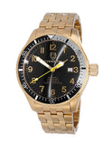 Case Case Measurements: L-44.50 mm W-44.50 mm H - 14.0 mm Case Material: 316L Stainless Steel (Gold tone) Crown: Screw down Crystal: Mineral Bezel: Rotating Unidirectional, Aluminum polished Bezel, Black-Silver with Gold tone trim. Dial: Black Metal Dial, Numeric Hour Indicator, Luminous Hour-Minute-Second Hands Back Case: Screw down, Mineral Crsytal