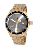 Case Case Measurements: L-44.50 mm W-44.50 mm H - 14.0 mm Case Material: 316L Stainless Steel (Gold tone) Crown: Screw down Crystal: Mineral Bezel: Rotating Unidirectional, Aluminum polished Bezel, Black with Gold tone trim. Dial: Silver Metal Dial, Numeric Hour Indicator, Luminous Hour-Minute-Second Hands Back Case: Screw down, Mineral Crsytal