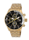 Case Case Measurements: L-44.50 mm W-44.50 mm H - 14.0 mm Case Material: 316L Stainless Steel (Gold tone) Crown: Screw down Crystal: Mineral Bezel: Rotating Unidirectional, Aluminum polished Bezel, Black - Silver with Gold tone trim. Dial: Black Metal Dial, Gold tone Numeric Hour Indicator, Luminous Hour-Minute-Second Hands Back Case: Screw down, Solid Stainless Steel
