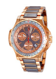 Case Case Measurements: L-45.0 mm W-50.0 mm H - 13.50 mm Case Material: Stainless Steel ,Rose tone, and Gray Owl Color High-tech ceramic Crown: Rose tone, Screw/down, with active pushers 2:00 - Push button (Start /Stop), 4:00 -Push button (Split Reset). Crystal: Mineral Bezel: Rotating Directional, Aluminum Gray Owl Color polished in Silver tone trim Dial: Grey Owl Color Sun-ray Dial, Luminous Index hour indicator , and Hour-Minute Hands, Rose tone Sun-ray Sub dials Back Case: Screw-Down Case back Band Bracelet Measurement: W - 24.0 mm L- 8 in Maximum Wrist Size: 9.75 in Bracelet Material: Stainless Steel (Polished Rose tone), Gray Owl Color high-tech ceramic middle links Clasp: Push button fold over dual deployment clasp, with original logo Movement Type: Chronograph (Ronda Swiss Made) Caliber: Ronda - R9 Z60 Water Resistance: 10 ATM - 200 meters - 660 feet