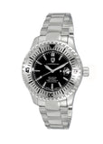 Case Case Measurements: L-45.50 mm W-45.50 mm H - 16.0 mm Case Material: Stainless Steel (Silver tone) Crown: Silver tone, Long Post, Water proof, Screw/down. Crystal: Sapphire, with Magnifying Date. Bezel: Rotating Uni-Directional, Stainless Steel Gear Design Polished in Silver tone. Dial: Black Enamel Date Window Dial, Luminous Index hour indicator , and Hour-Minute Hand in Sliver tone. Back Case: Exhibition Screw-Down Case back Band Bracelet Measurement: W - 22.0 mm L- 8 in Maximum Wrist Size: 9.50 in Bracelet Material: Stainless Steel (Silver tone), Middle links polished. Clasp: Push button fold over dual deployment clasp, with original logo Movement Type: Automatic (Swiss Made) Caliber: SELLITA SW-200 - 26 JEWELS Water Resistance: 20 ATM - 200 meters - 660 feet