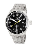 Case Case Measurements: L-44.50 mm W-44.50 mm H - 14.0 mm Case Material: 316L Stainless Steel (Silver tone) Crown: Screw down Crystal: Mineral Bezel: Rotating Unidirectional, Aluminum polished Bezel, Black-Silver with Silver tone trom. Dial: Black Metal Dial, Numeric Hour Indicator, Luminous Hour-Minute-Second Hands Back Case: Screw down, Mineral Crsytal