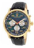 Band Bracelet Measurement: W - 24.0 mm L- 7.25 in Maximum Wrist Size: 9.0 in Bracelet Material: Black Genuine Leather band Clasp: Polished Gold tone Buckle, with original logo. Movement Type: Chronograph (Japan Made) Caliber: Epson VR32 Movement Water Resistance: 10 ATM - 100 meters - 330 feet.